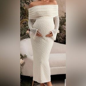 off-shoulder maternity dress