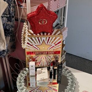 Christian Dior Red Star-Shaped Pouch w- Red Rouge 999 Mini & More