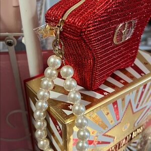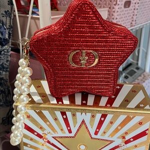 Red star-shaped pouch with pearl handle. Features Christian Dior logo. Comes with the limited edition Lunar New Year box- a mini deluxe red 999 lipstick-