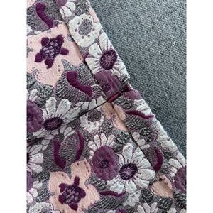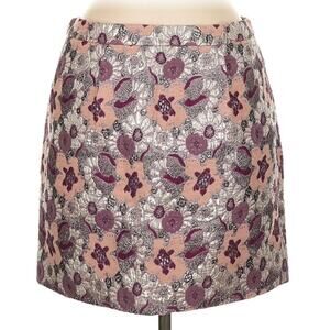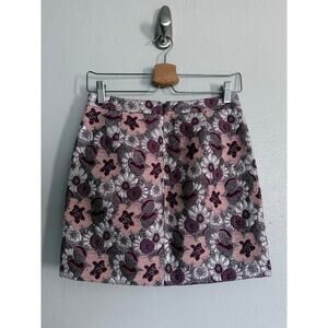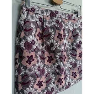 J CREW COLLECTION wool silk pink silver purple floral brocade mini pencil skirt - side pockets - back zip closure