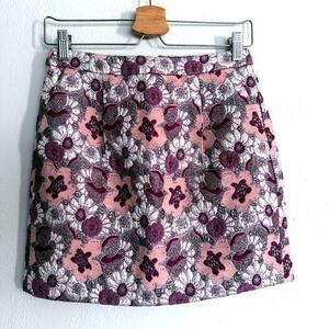 J CREW COLLECTION wool silk pink silver purple floral brocade mini pencil skirt