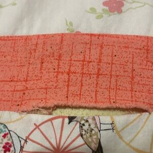 GUC Modern handmade quilt in corals, pinks and greens. Nursery. Needs some care and repair for two rips (see pics). There are a few small stains that can be easily treated and washed out but I hesitated to wash it more before it was repaired. Perfect for a little girls room or nursery.