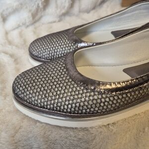 NEW Ron White Natanya Slip On Flats Shoes Silver Leather Mesh Size 10 MSRP $495