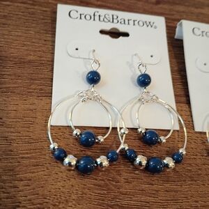 Croft & Barrow Beaded Double Hoop Dangle Earrings Lot of 2 Blue Black Silver
