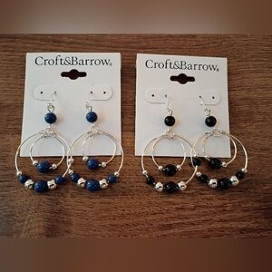 Croft & Barrow Silver Tone Beaded Double Hoop Drop Earrings Bundle Blue Black. Includes both pairs.