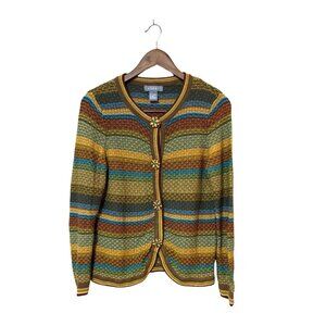 Koret Multicolor Button-Up Knit Cardigan Sweater With Striped Pattern & Decorati
