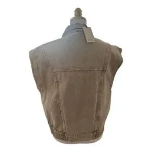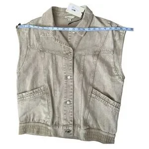 NWT Elan Joy Vest Tan Wash Button Down Denim with Pockets Sz Med