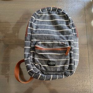 Stylish gray striped backpack perfect for everyday use. Features a sleek design with a convenient front pocket. Like new condition; open to offers!