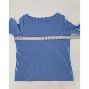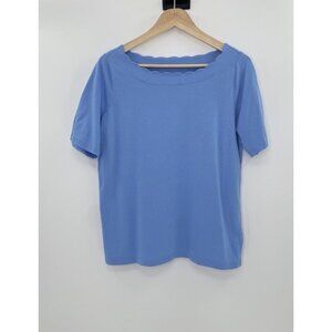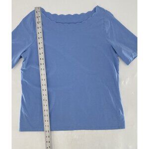 Talbots Plus Cornflower Blue Scallop Neck Pima Cotton Women Blouse Top Sz XP