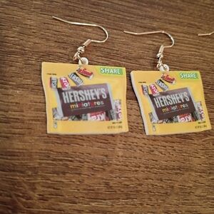 his adorable, two-pair bundle of novelty drop earrings features incredibly realistic, miniature bags of your favorite classic candies: Hershey's Miniatures and Butterfinger Unwrapped Minis.