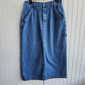 Vintage Route 66 Women's MAXI Denim JEAN Skirt Blue Pockets Sz 11/12 Sk8