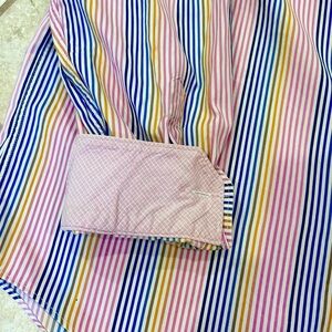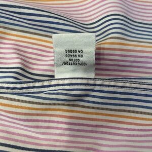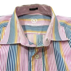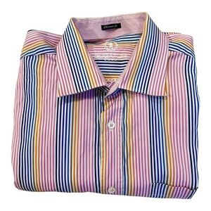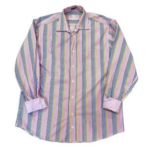 Bugatchi Uomo Men’s Dress Shirt Pink Blue Yellow Stripe Classic Fit Button Up XL