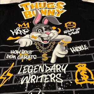 This stylish black Thugs Bunny men’s t-shirt. Featuring a fun graphic design, it's both comfortable and trendy.