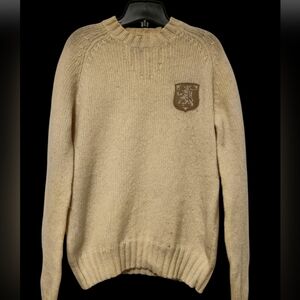 M💙Diesel 100% Wool Cream Beige Crewneck Sweater with Logo
