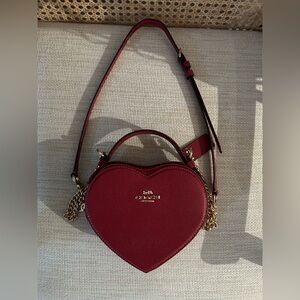 Like new Coach pebble leather red heart crossbody bag. Gold hardware. Comes with detachable strap.