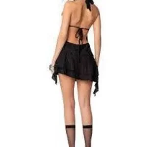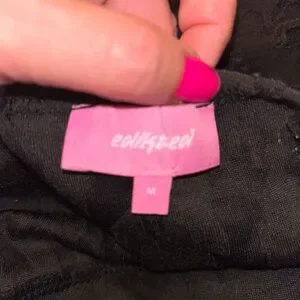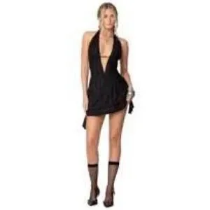 NWOT - Edikted Black Shredded Mini Dress with Plunge Neckline