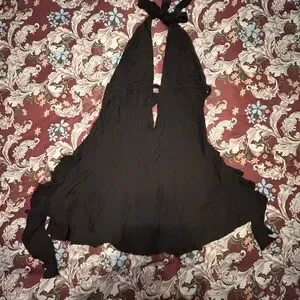 Chic black mini dress featuring a daring plunge neckline. Ideal for stylish outings. Never worn.