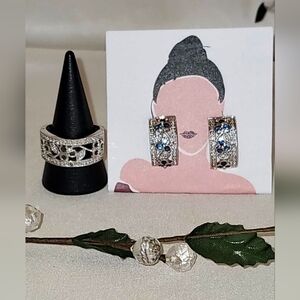 🗝Vtg Silver and Topaz Premium Fashion Jewelry Set (Ring and Earrings)