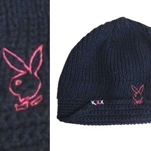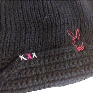 VTG Y2K PLAYBOY Bunny Black Knit Pink Embroidered Beanie Hat RARE