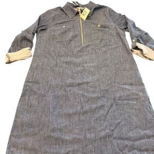 NEW Anne Klein Dark Denim Dress 3/4 Roll Tab Sleeves Zip Size 10 Shirt Midi $99
