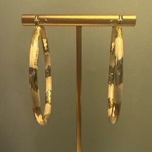 These stunning gold hoop earrings add a touch of elegance to any outfit. Perfect for any occasion.