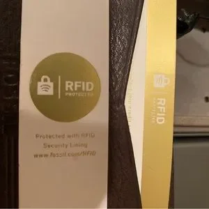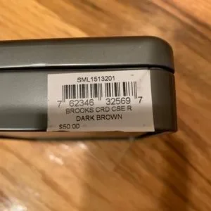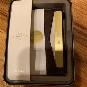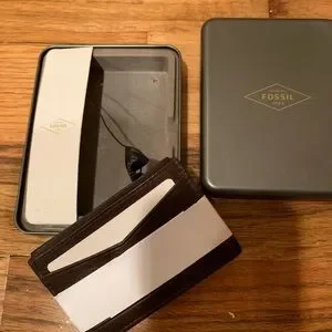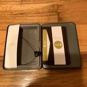 New with Tags and in Metal Box Fossil Leather Card Case With RFID Lining Brown