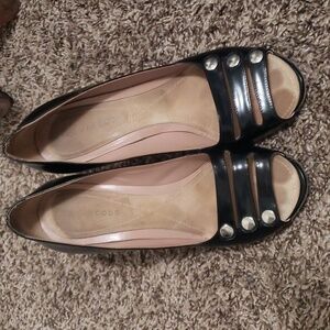 Marc Jacobs Black Leather Studded Peep Toe Heels