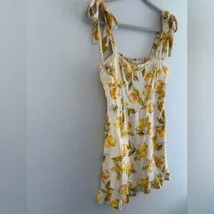 Urban Outfitters Lemon Print Tie Strap Mini Dress Size Medium