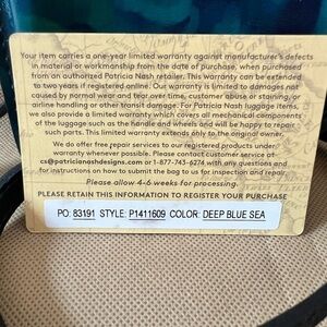 Exterior: 1 rear slip pocket, 1 front pocket with twist lock closure, deep embossed grape leaf floret logo, burned edge finish