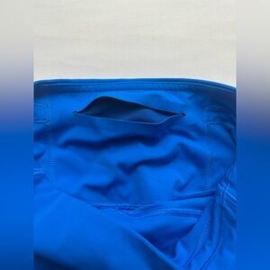 Cerulean blue winder train 25” tight. Grip on inside of leg hem seen in photo. Excellent condition.