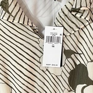 NWT Elegant dress with floral and stripe design. Features a tie waist.