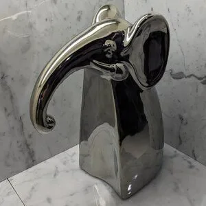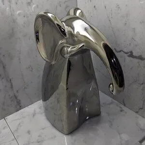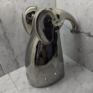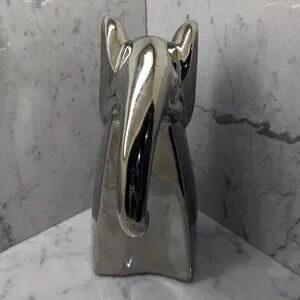 Pier One metallic gunmetal/silver glazed ceramic elephant