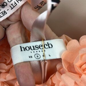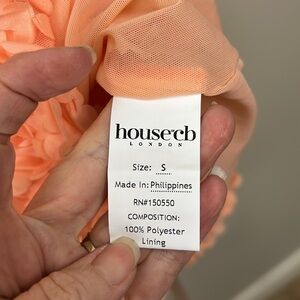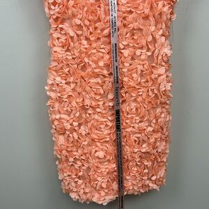 Stunning coral mini dress. Features intricate floral texture. Perfect for a night out.