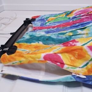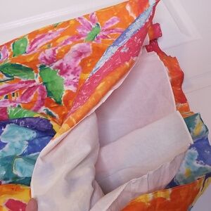 Lauren Ralph Lauren Watercolor Print Skirt Orange Teal Yellow Pleated Waist