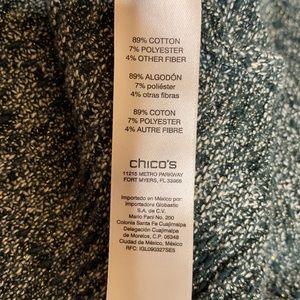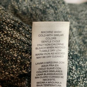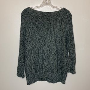 CHICO’S Sweater Green & Metallic Gold Dolman Sleeves Scoop Neck 3/4 Sleeves 12
