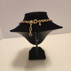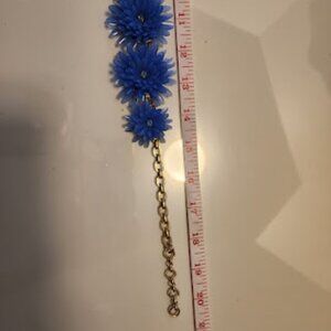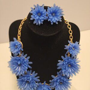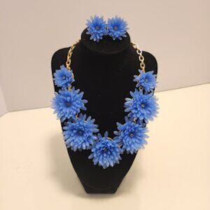 J.Crew Blue Floral Gold-Tone Crystal Statement Necklace and Matching Earrings