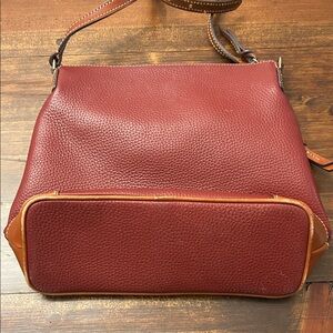 Dooney & Bourke Pebbled Leather Crossbody Bag – Dark Red with Tan Trim