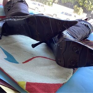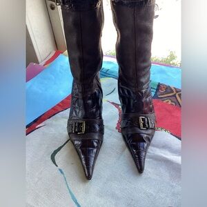 Beautiful brown booties from Aldo marked 35. No scuffs stain all leather very pointy. 12 tall end to end. Heel 3.5 zipper on side.