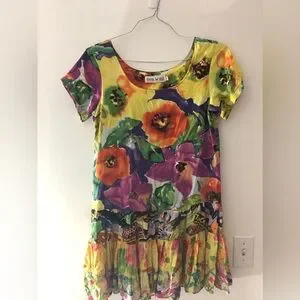Vintage Jams World Hattie Tiered Mini Dress in Mixed Poppy Print Size Small