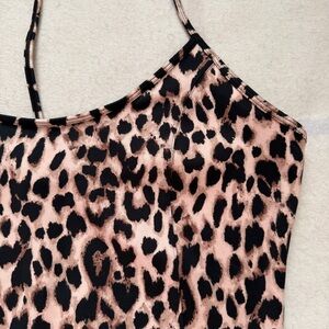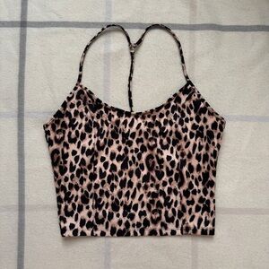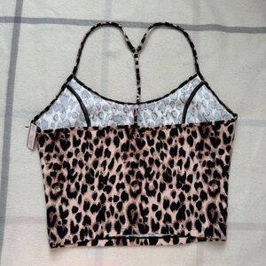 Victoria's Secret Leopard print cropped tank top with racer back spaghetti straps.