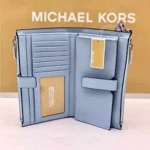 Michael Kors DoubleZip Wallet Wristlet Phone Case VISTA BLUE