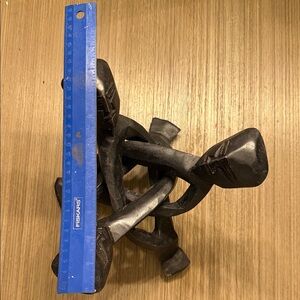 Beautiful handcrafted African “Unity” sculpture carved from dark stained wood. This unique piece features intertwined figures symbolizing unity, family, and connection.