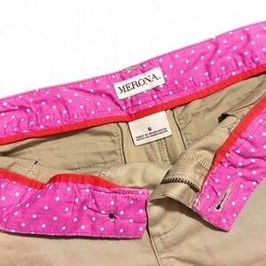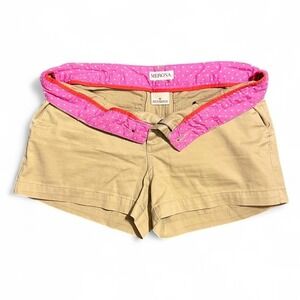 Y2K Tan Mini Shorts Low Rise Size 6 Pink Polka Dot Waist Preppy 2000s