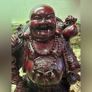 Vintage Ornate Intricate Buddha Laughing Statue 9” Red Figure Statue 4.2 Lbs.