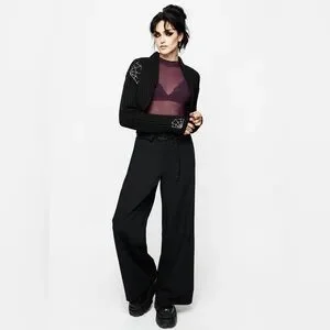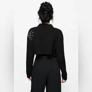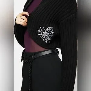 - Black spiderweb embroidered knit bolero top