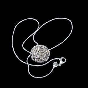 This stunning domed pendant necklace features pave set crystals for a sparkly addition to any party outfit. Crafted from silver tone metal, it offers a timeless look perfect for various occasions.
