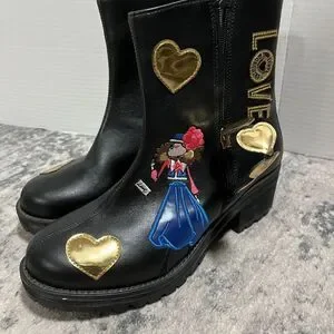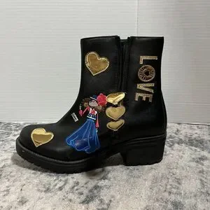 Love Moschino Women’s Black Combat Boots Heart Graphic Side Zip Lug Sole Size 40