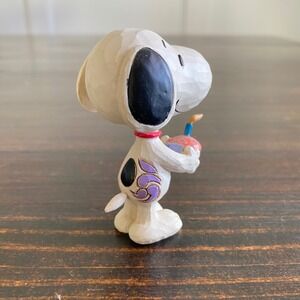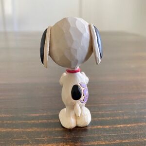 Jim Shore Peanuts Snoopy figurine captures the beloved beagle celebrating with a festive cupcake and a single candle. Hand-painted with the artist's signature folk art motifs and a wood-carved texture, this miniature collectible features vibrant purple and black accents on Snoopy's side. Ideal for birthday decor or a year-round display for Peanuts enthusiasts, this piece is crafted with the high-quality stone resin typical of the Heartwood Creek collection.