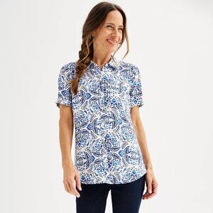 NWT Croft&Barrow Women Short Sleeve Button Down Collared Floral Top Extra Large