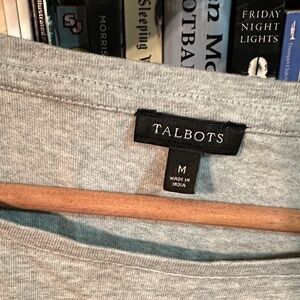 Talbots Gray Long Sleeve with Sequin Deer Motif wearing scarf